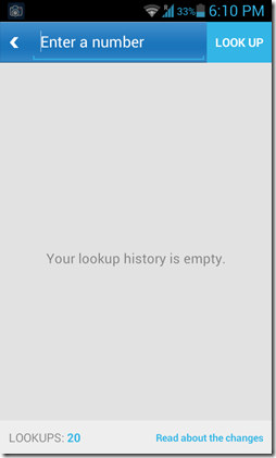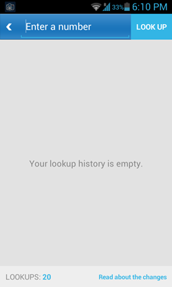 There are several options on the top of the screen that you can access on this page, like the magnifying glass button. Clicking on this button takes you to the Lookup page. In the lookup page, you can search for numbers that you don’t know the online database. When you click on the magnifying glass button, you will be presented with a screen that looks like the following screenshot.