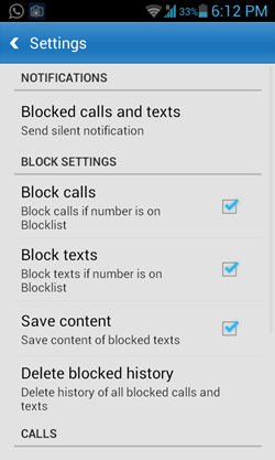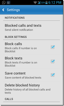 In the settings window, you can select various options like Blocked calls and texts, Block calls, etc. These options are better not messed up with.