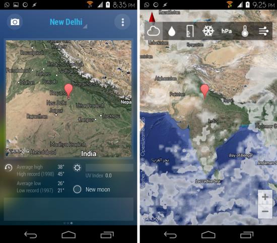 Bright Weather for Android is a nice weather app which has a superb interface. You get all the weather information in a clean and refreshing interface. The app lets you view cloud coverage in the maps part of the app. If you like functionality and simplicity. then try out Bright Weather for Android.