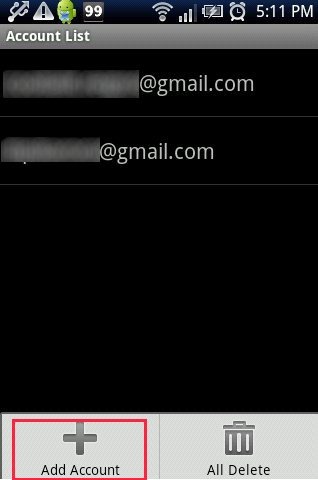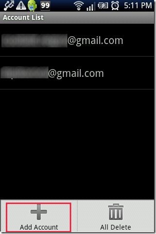 Step 6: Tap on “add account” option and enter your mail id and password from which you want to send email.