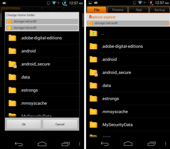 You can get this free file manager for Android from the link or QR code given at the end of this review. When launched for the first time, Neptune File Explorer will ask you for the home folder. Tap on the ‘OK’ button to continue, or you can tap on other required folder and then tap on ‘OK’ to change the home folder. After this, you will have the interface of the app, as seen below in front you.