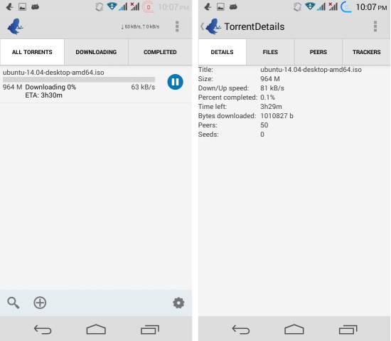 Once the torrent has been added to Vuze Torrent Downloader for Android; the app will start downloading it. You can tap on the torrent to view more details.