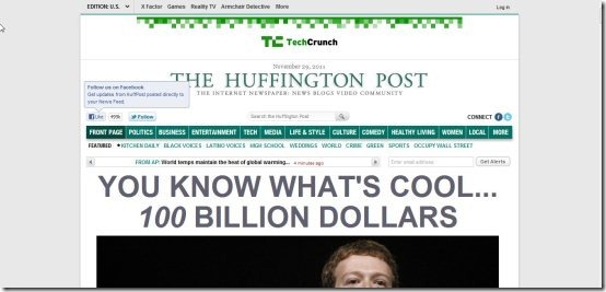 Drudge report is a straight forward and one of the well know news aggregator which is commonly used. This news aggregator basically consists the links of the stories from U.S and mainstream international media related to politics, current events, entertainment, etc. This news aggregator includes selected hyperlinks to various news websites worldwide. And each of the link carries a headline. Drudge Report includes most popular and most read news from across the world. You can also view the front pages of some of the most popular newspaper worldwide by simply clicking “World front pages”. This news aggregator also allows you to check local news just by entering your zip code. Box office result for a movie can also be viewed.
