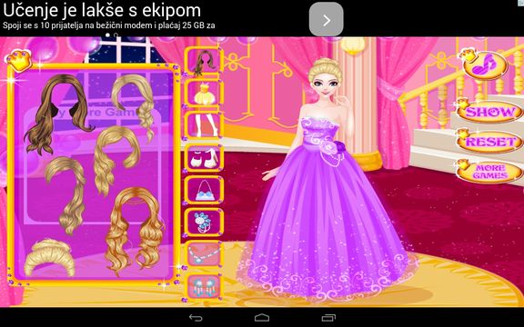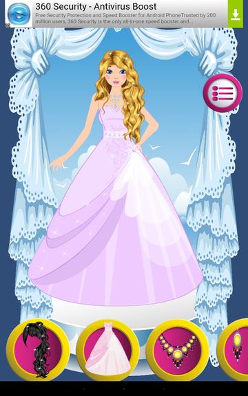 After selecting a character, first thing that needs to be done is makeup, followed by selecting jewellery and even designing your own jewelry (by choosing diamonds and pearls used on tiaras and necklaces). After all that you get to the actual dress up portion of the app. App is quite large (around 100MB), and note that some dress packs aren’t available in the free version.