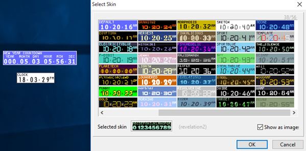 This last desktop clock widget software for Windows 10 I included because the list needs a bit more variety. TimeLeft can be used to add a digital clock widget in exactly 150 different templates to the desktop of your Windows 10 powered devices.
