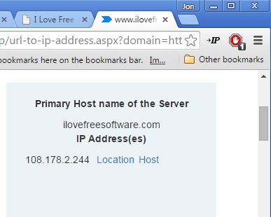 Domain to IP works by automatically filling in the domain name of the currently open web page into a web based domain to IP converter which opens up in a new tab.
