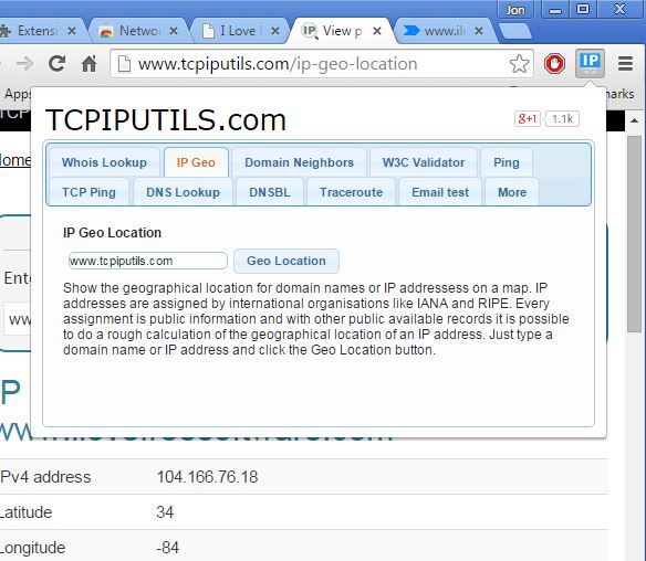 You can see the extension in action on the image above. Next to IP GEO Location look up, which is basically domain to IP converter, there’s also whois lookup, ping tool, traceroute, W3C Validator and more.