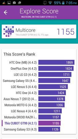 Tests give you 2 separate results: multi-core results and single core result. Multi-core will put load on all your CPU cores at once. Single core, on the other hand, tests the performance of individual cores (for those apps that aren’t multi-core optimized). Tests involve data compression/decompression, floating point processing and RAM performance. Geekbench 3 also has a list of average results for more popular devices (Samsung, HTC, Sony, etc) to help you compare your own device.