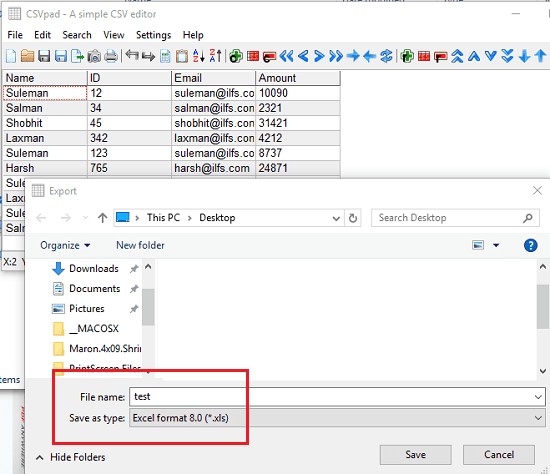 This is a quite a simple software that you can use on your PC to convert TSV to Excel. But to open the TSV file in it, you will have to open it as TXT file. So first change the file extension of TSV file from “.tsv” to “.txt”. After that, run this software and then open the file in it using the File> Open option. Next, it will open the file and will show you the data in tabular form. You can edit it if you want. And to instantly convert it to Excel, use the Export option from the File menu. It will ask you where you want to save the final file. And do not forget to choose “Excel format” option from the “Save as type” drop-down.