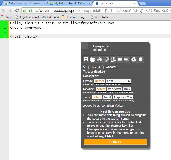 Text Editor for Drive has a more easy to follow interface than Drive Notepad, but other than that these two Google Drive text editor extensions are very similar.