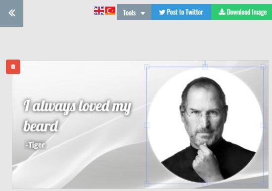 Then, you can customize the quote by adding your own text. You can add the plain or fancy text an place it anywhere on the image. If you want to change the background image and color then you can use tools for that.