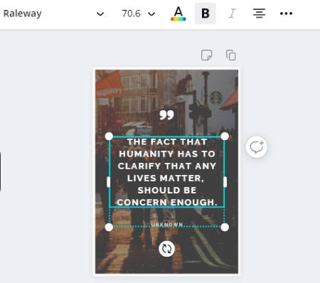 Here, you can simply pick a suitable background and then start editing it. You can type your own quote and leave the signature below. After this, you can choose different background images provides by Canva.