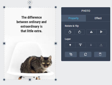 Here, you can start with the plain canvas where you can place all the relevant components. You can add text with heading and sub-heading. The text style can also be changed. You can add more space between letters, adjust line-height, shadow, opacity, effects, etc.