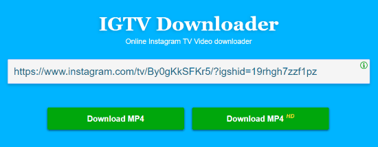 After visiting the site, you will have to input the IGTV video URL. And below that, you will see two options to download a video. You can save IGTV video in the HD quality or in just MP4 file format.