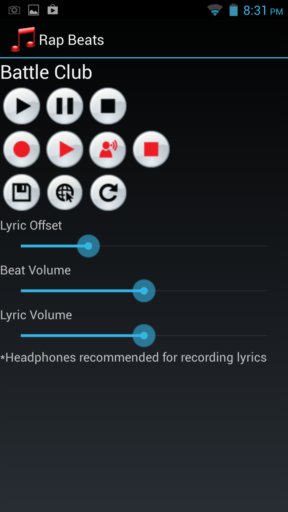 By default there’s only 1 beat that’s available for download. Others that are available, 125+ of them, you’ll have to pay. But you can import your own audio tracks/beats into the app and rap to them. Image above shows the recorder where you get to record your rap skills. Play the beat, hit the record button and start rapping. Once you finish, hit stop, save your track and enjoy.