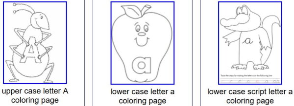 Coloring is a nice website with lots of printable coloring pages for kids. When you land on this website you will see a interface like the one shown in the screenshot above. The coloring pages for kids have been divided into various categories. You can choose from these categories some of which are divided into sub categories. You can start by picking basic categories like alphabets, animals, numbers, etc. For example, if you choose the category alphabets, then you will see coloring pages for lower case letters and upper case letters. Each letter of the alphabet is accompanied by a cute animal, as can be seen in the below screenshot.