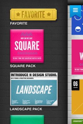 The question mark icon on the home screen will give you options to learn how to use the app. You also get the option to mark templates as favorites. When you are browsing through many templates and don’t want to loose the one you liked. Then you can mark them as favorites for quick access. All you have to do is press and hold on the template that you liked. A star will appear on that template indicating that it has been marked as favorite. For accessing your favorite templates all you have to do is slide your finger on the “Select Template” screen from left to right. This will open up your favorites menu in the left hand side space. Click on Favorites in yellow color at the top. You will be directed to your favorite templates.