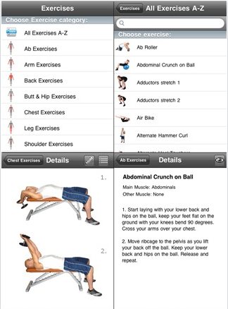This exercise will give you instructions on how to perform that particular exercise with pictures for better understanding. If you perform these exercises then you can add them in your workout log. Also you can create your own weekly exercise scheme and follow it easily. Download Fitness Pro here.