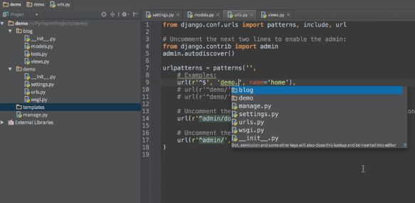 We can’t go over all the features of this free Python and Django IDE, but you can see on the image above that when you type in code that auto-complete is there to help the programmer save time. A very large database of suggestions is available, and you can expand it with your own entries.