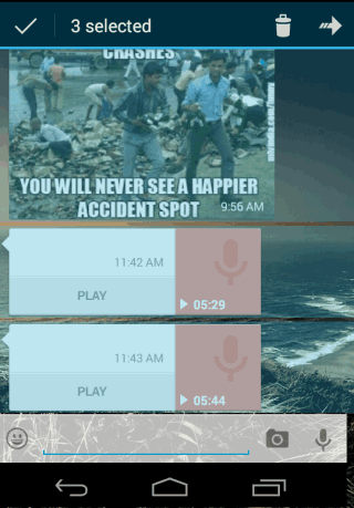 - Tap and hold on any one of the photo and video in the conversation to select it. Now tap on all those photos and videos, one by one, which you want to delete. You can see the number of photos and videos selected by you at the top.