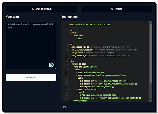 Text to Action is a handy tool that can help developers save time. There is no need to go through the process of writing the complete YAML code by yourself. The output of the tool might not be perfect and ready to use. But don’t have to start from scratch. You can explain the process and get a code to work with. Then you can simply make the desired changes and have the final version of the Action file.