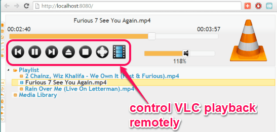 You can also clear playlist, add media files, enable full screen of your VLC player, and access other features using web interface.
