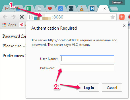 Step 7: Now open your preferred web browser in another PC or your smartphone and enter the address: IP address of your PC and port number. It would be like ‘http://192.168.1.25:8080‘. After adding the address, press enter. A pop up will open prompting you to enter username and password. You simply need to enter the password and press Log In button.