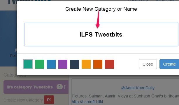 After importing tweets, you can use Create New Category option. Give a name to new category, select its color, and click on Create button.