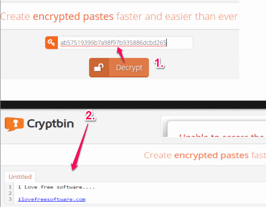 Cryptbin is a free website to create and send self destructible messages with encryption. It lets you create private and public messages, and for both messages, it provides AES-256 encryption.