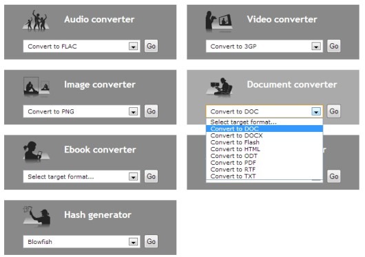 Online Convert is a free online file converter service that lets you convert your media files (audio & video), images, eBooks, documents, and also has the hash encryption facility for your files. You can upload all of these supported files to Online Convert and it will convert your files into desired output format. Thus it is a versatile converter that provides image converter, audio converter, document converter etc. All of the converters you can use for free. That’s why this is quite different from other online converters. The only thing lacking in this free Online Convert is that you can upload video files upto 100 mb only. For converting larger file, you need to go for a paid registration.