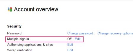 - Under the “Security” column, there is a “Multiple sign-in” option which must be “Off” by default.