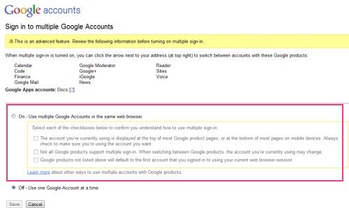 - This will bring out a page where you can manage “Multiple Accounts” settings. Click on “On” button which will enable your multiple accounts accessibility.