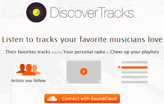 DiscoverTracks is a free online app for SoundCloud to listen to favorite tracks of people you follow on SoundCloud. It automatically fetches all those tracks that are marked as favorite by the people you are following and lets you play those songs. Apart from this, you can also add those tracks to your SoundCloud playlists.