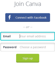 Visit its homepage using the link present at the end of this review. After this, you have to join Canva by sign up. You can either use your Facebook account or enter email address and password for sign up.