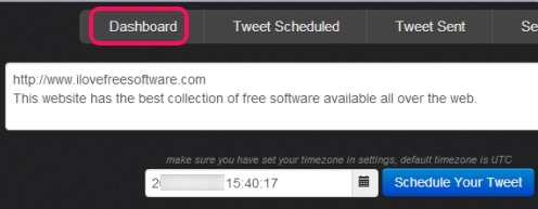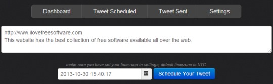 TwitLate.com is a free and online application service that helps to schedule tweets to post later automatically for a particular date and time. You can schedule unlimited number of tweets using TwitLate.com. If you usually forget to update your Twitter timeline because of your busy schedule, then this online service is quite helpful for you.