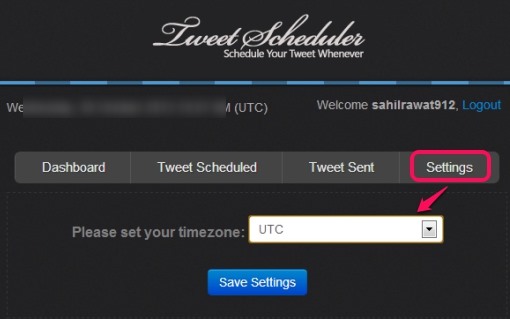 It is necessary for all users to first select time zone according to their country so that tweets will be posted at the exact date and time. Use Settings option to set time zone.