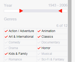 You can further filter this list by selecting those websites whose database you want to use for searching the movies. Simply click on the name of websites which you want to include in filter process. Apart from this, you can move sliders to set MPAA rating level, year, and Tomatometer rating percentage to sort movies. Real-time results for movies is presented to you. That means, as soon as an option is selected by you, movies list is filtered immediately.