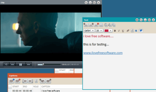 ClipFlair Studio is an online service that helps you to transcribe your media files online. You can open online videos (using the video URL) or can add audio/video file from PC for transcription. It supports mp4, mp3, wmv, and wma media files. Without any sign up process, you can use its built-in text editor and media player for transcribing your files. What makes it more beneficial is that multiple instances of its media player and text editor can be opened together.