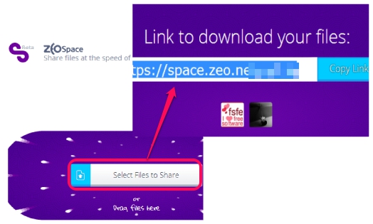 For this feature, you need to access the homepage of ZeoSpace, and drag n drop files that you want to share. The homepage link of ZeoSpace is available at the end of this review.