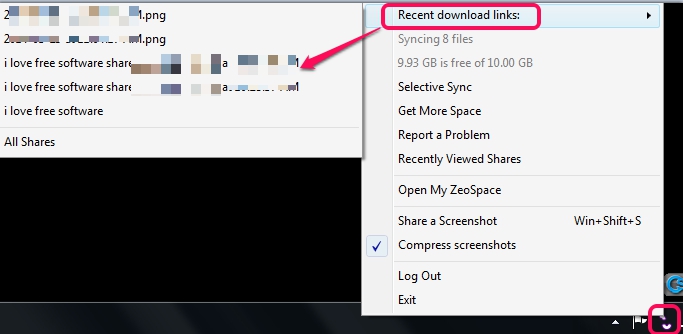 This knowledge tour is also beneficial to let you understand about how you can share and backup files on cloud using its desktop client. Once ZeoSpace is installed and you have earned 9 GB space, you can share a file right from desktop as well as backup it online using right-click context menu.