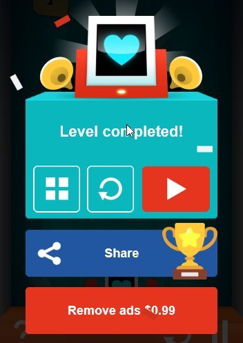 The level up screen will look like the screenshot above. You can just click on the play button to move on to the next game.