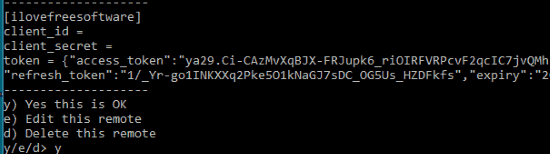 After authorizing, get back to CMD, press “y” key and hit “Enter” button to add your Google Drive account. You can add other Cloud storage accounts in the same manner as we have added Google Drive account. Please note authorization step might vary for different cloud storage types.
