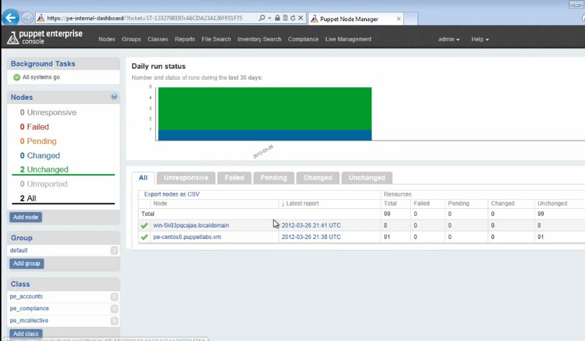Image above shows us the interface of Puppet Enterprise main control panel from where you can manage the puppets, or nodes as they are called. The free version of this IT automation software allows you to add up to 10 nodes, so you can automate the administration of up to 10 computers for free. If you need more, you’ll have to upgrade to one of the paid plans.