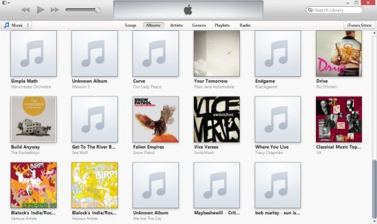- The side bar which had playlists, library, iDevices that are connected the computer, etc. are gone. Now the interface is cleaner and simpler as you can see in the screenshot above. All there is to the main interface is simple album covers, laid out in a simple grid pattern. Switch between Music, Movie, TV Shows etc. by clicking on the left side of the application window as pointed out by the screenshot below.