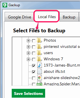 Step 4: Interface of this software is very easy to use. To set a backup process, you first need to click Local Files tab. In that tab, you can select which files/folders or both you want to backup.