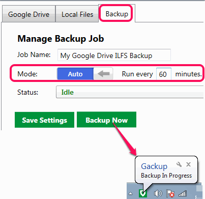 Apart from auto backup process, this software also lets you manually backup your precious files to Google Drive. It runs in system tray silently and doesn’t slow down your PC during backup process. Thus, you will be able to comfortably work with your PC while backup is in progress.