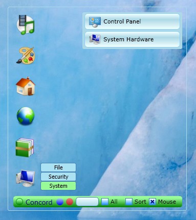 Concord adds a very small transparent box right in the center of the desktop. You can see it’s outline on the screenshot above. Everything except the buttons in the left sidebar, buttons down below and launchers on the right is completely transparent.