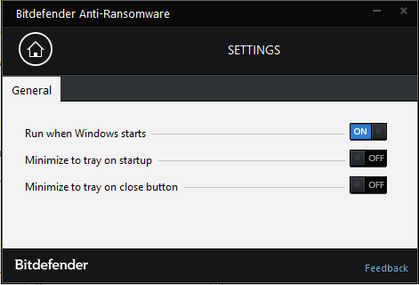 Above you can see the main interface of Bitdefender Anti-Ransomware.