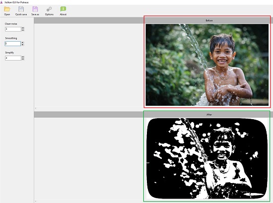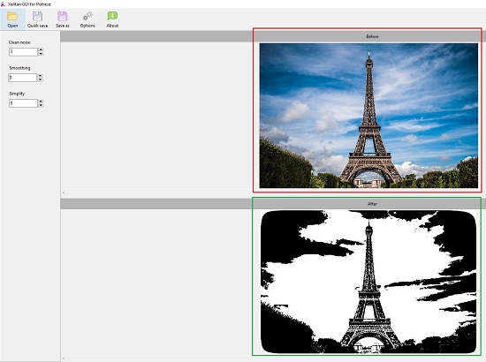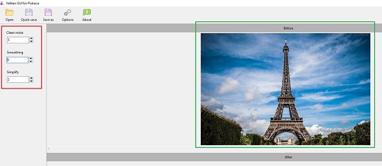 3. Next, you can Smooth or Simplify the image or Clean the noise by modifying the values in the corresponding fields in the left side panel.