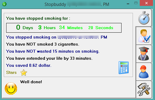 While using this software for the first time, you need to fill some details, such as: number of cigarettes you smoke daily, amount you spend per day, etc. After this, you can get your quit smoking mission started, and it will count total number of days, hours, minutes and seconds you haven’t smoked. You can also password protect its interface that is handy to secure your records from other people.
